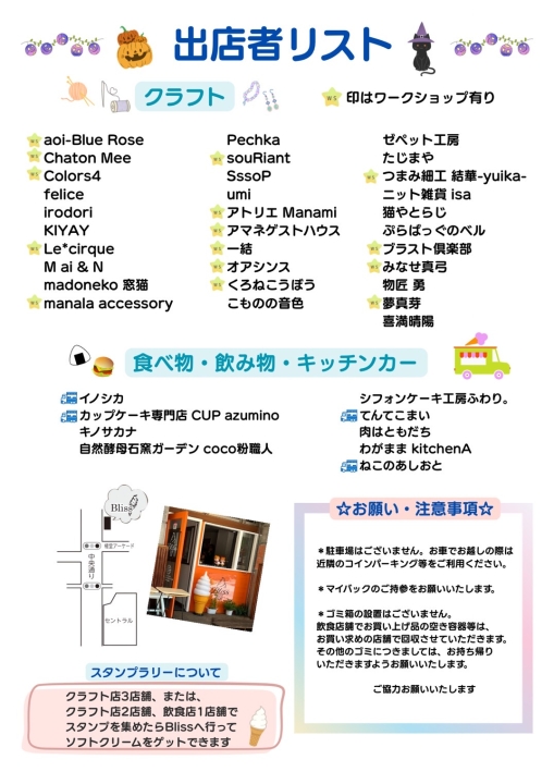 名物『Blissのハンバーガー・ピザ・ホットドック・おにぎり(冬季)』、毎日で焼き上げる『特選やきいも(冬季)』や、地元の牛乳で仕上げた『信州ミルクソフトクリーム』や期間限定ソフトクリーム、プレミアムソフトクリーム『クレミア』、飲み物を販売しています。